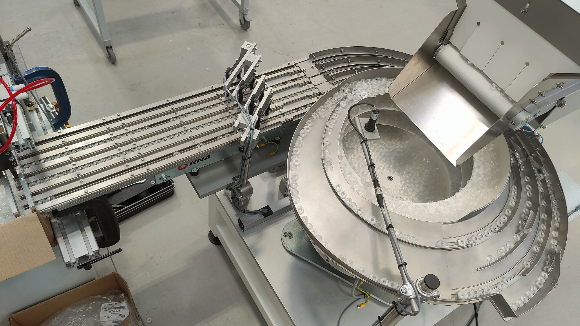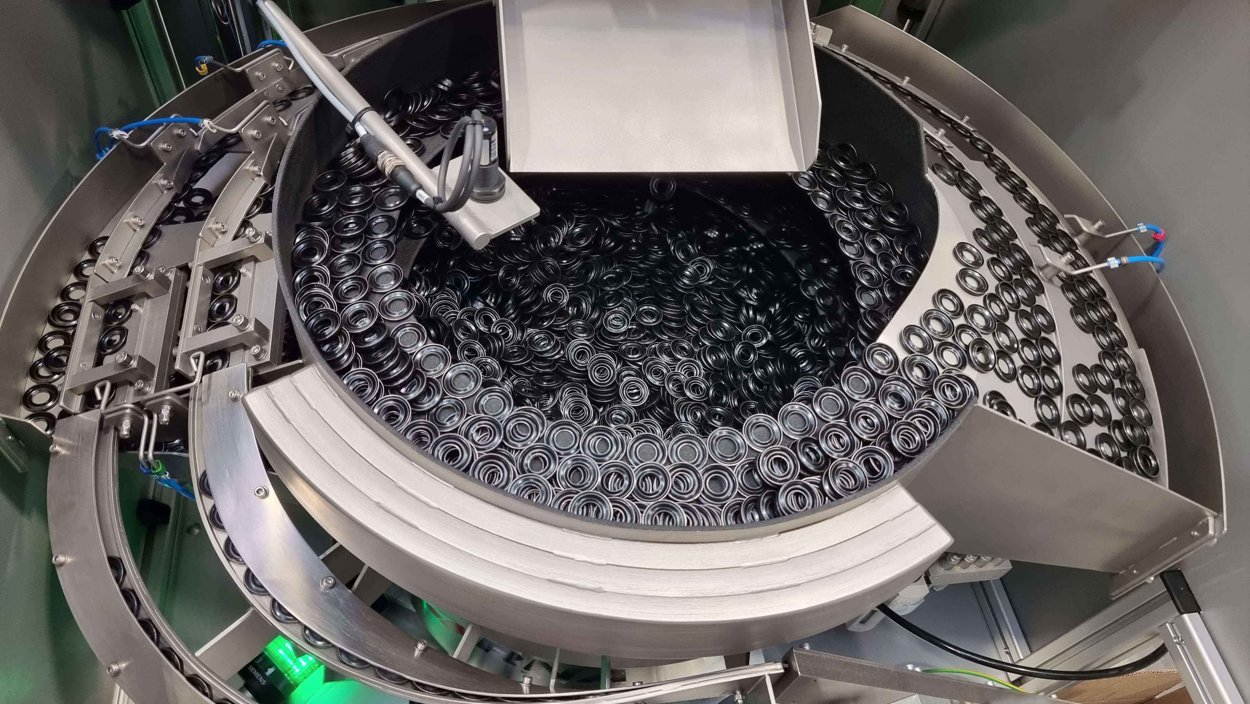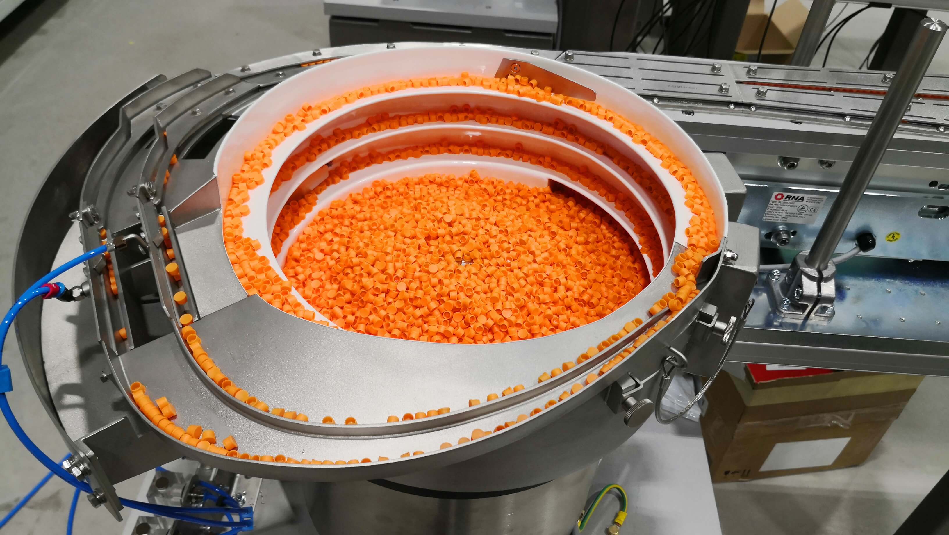 Bowl Feeder feeds and orientates Pharmaceutical Caps