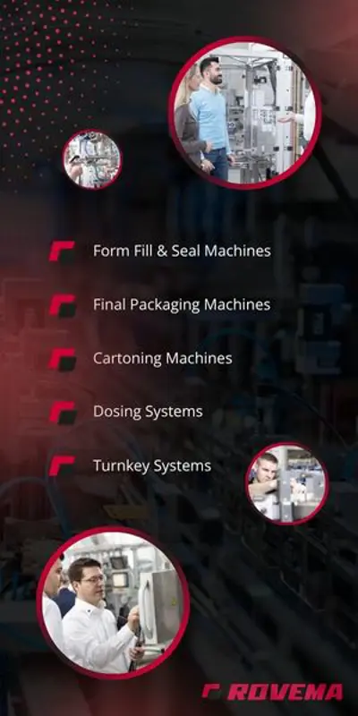 In addition to offering a wide range of individual machines, Rovema specialise in providing a complete project engineering service to the food, confectionery and chemical industries. With the acquisition of innotech, we now offer an even greater range of machines ideal for the frozen food industry. Machinery supplied to the following industries: * Tea/Coffee * Cereals * Frozen Foods * Dairy * Confectionery * Snack Foods * Rice & Pulses * Herbs & Spices * Dried Fruits * Pet Food * Fresh Produce * Bakery * Powders * Baby Food * Horticulture * Chemicals * Contract Packers