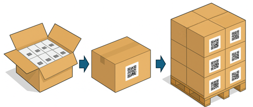 Acrotrace supports the scanning and tracking of barcodes/data matrices across all packaging levels. From individual items to shippers and pallets, ensuring traceability and compliance throughout.